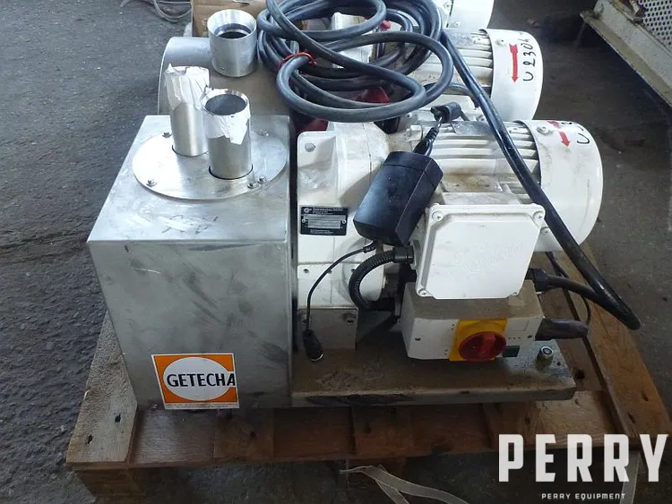 Used horizontal cutting mill by Getecha (Germany) type SRS 100 A1.10. Mill has two feeding inlets, each with diameter 40 mm. Milling chamber is designed in stainless steel and has internal diameter 100 mm x length 100 mm. Rotor is designed in non-corrosive steel and has 4 knives and is driven by gearbox and electric motor 0.55 kW, 1375 rpm, 230-400 V, 50 hz. Working rotation of rotor up to 127 rpm. Mill has one static knife. Bottom discharge through screen. Outlet discharge has diameter 55 mm. Mill is mounted on mobile platform. Has start/stop control and stainless steel cover with sound insulation.