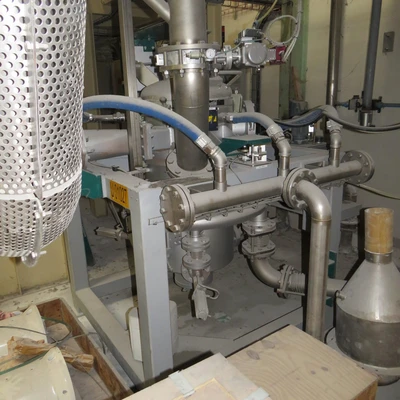 Used Consisting of :-1 NETZSCH grinding plant :-1 NETZSCH air jet grinder type CGS 50-1 filter with automatic pulse cleaning and fan-Feed hopper and vibrating corridor-Sold without compressor / 1 WAM mixing plant :1 WAM stainless steel mixer type WBH2030-volume capacity 2000 litres-Drive : Hp 75-Type of tools must be confirmed-Vibrating corridor for emptying