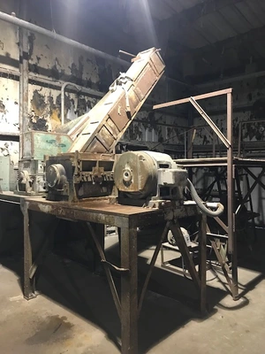 Used 16″ x 24″ Cumberland Grinder. Model #24B, serial #RS58500-7614, new 1996. Has 3-knife rotor. Belt driven to a 100 hp motor. Has a pipe feed hopper (Not tray feed style), mounted on platform with approximately 48″ discharge height.