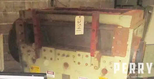 Available at additional cost ($10,000) is a nip roll hopper with 6″ diameter X 37″ wide knurled and grooved offset position feed roll infeed with pneumatic pinch, feed roll in-feed trumpet, feed rolls are chain & sprocket driven by a 7.5 HP 1750/1930 rpm continuous duty DC motor thru Reliance 2.76:1 gearbox.