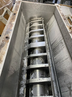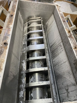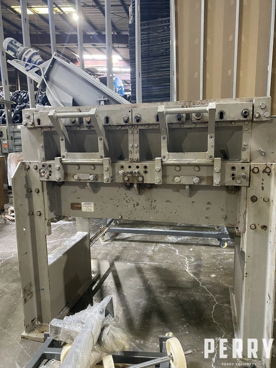 Used 100 hp Cumberland Model 2056B granulator. Equipped with 3-knife open rotor, 1/2″ o.d. screen, and tray feed hopper. New approximately 1983. Includes spare blades and screen.