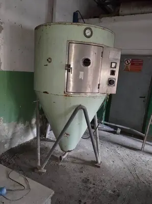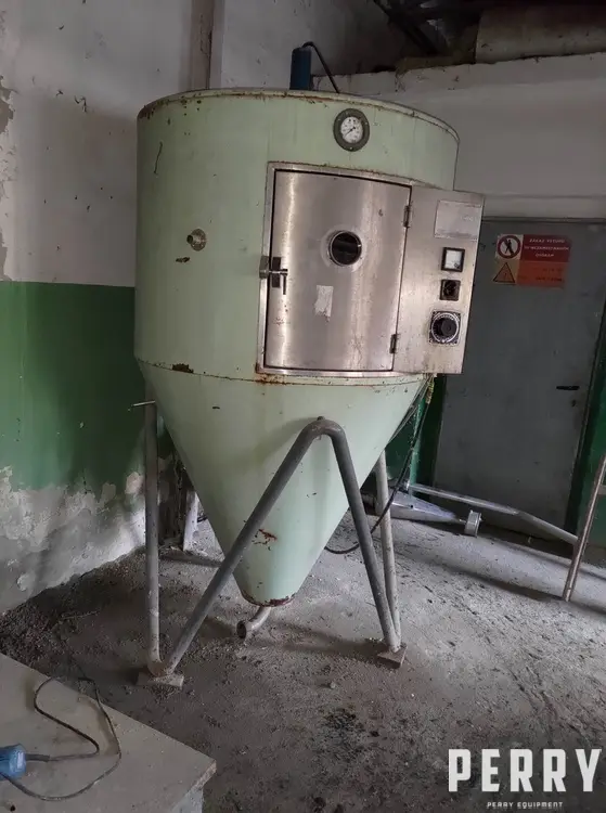 Used APV Anhydro model LAB S1 stainless steel spray dryer. Unit rated approximately 7.5 kg/hour water evaporation rate (depending on product) at inlet/outlet temperatures of 300/90°C. Drying tower approximately 1000 mm diameter x 700 mm cylindrical height x 1100 mm conical height. Chamber is insulated and covered carbon steel. Unit includes (1) top mounted Anhydro centrifugal atomiser. Unit includes electrical air heater, cyclone, collection pot and some pipework.