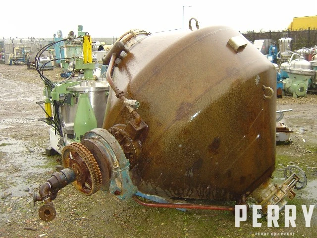 Perry is offering a used Pfaudler model CD72 glass lined double cone dryer/blender. Pfaudler is a global leader of manufacturing drying equipment. This units working capacity is 70 cubic foot (1.99 cubic meter) total capacity 107 cubic foot (3.04 cubic meter). Operating pressure internal 2.1 bar/full vacuum @-29 to +200°C, jacket 2.8 bar @-29 to +200°C. Heating surface 110 square foot (10.22 square meter). Driven by a Brook Crompton 5.5 kW, 415 V, 3 PH, 50 Hz, 1440 rpm, EEXD11T4 rated electric motor through Pfaudler hydraulic infinitely variable speed drive and a Renold worm master gearbox. Perry has been supplying this type of equipment for decades. You can rely on getting a first class service from the Perry Equipment Group.