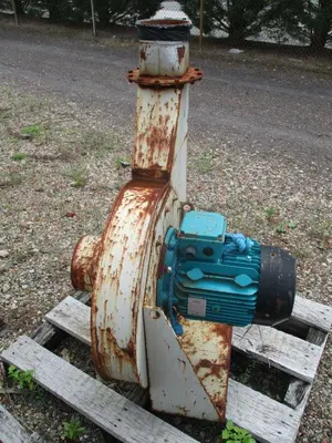 Used conveyor blower previously used for discharging product from #50 Cumberland granulator. Blower has dual rating as follows: