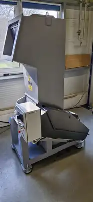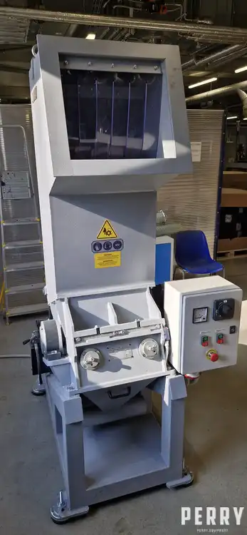 Litlle used VESPA ( Bulgaria), model 35/40 VGA, horizontal cutting granulator. Rotor width 420mm, rotor diameter 200 mm, rotor is with 6 x knives. Stator has 4 knives. With hopper, hinged top, motor 11kW, 50Hz, 400V. Forced discharge by ventilator with 4kW motor and cyclone. Bottom side discharge through the screen ( 6 and 8 mm screen is included). Included switchgear and complete spare set rotor and stator knives. Output : 150 – 250 kg/h.