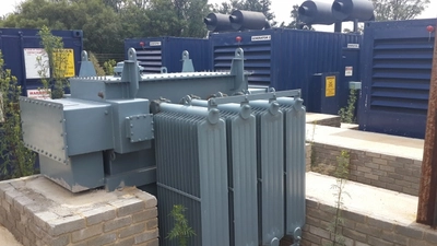 (4) Used 1100 kW, 1300 kVA Detroit diesel V-16 model 149 generators with 1300kVA, 400 V alternators. Includes (2) 2 MVA transformers with power 2000 kVA, ht voltage 6600 V, LT voltage 400 V and (1) synchronising control unit with LV switching, cables and cable racking. Reported to have had less than 100 hours use.