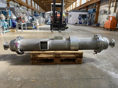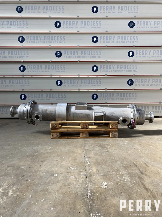 Unused approximately 15 square metre vertical shell and tube heat exchanger. Unit has approximately 17.4mm diamater x 2000mm long stainless steel 316 tubes. Unit has a design pressure of 6.0 bar / full vacuum shellside and 10.0 bar / full vacuum tubeside. Unit has a design temperature of 150°c. Unit has a stainless steel 316 shell approximately 2000mm diameter x 330mm straight side. Unit has mounted side support lugs for easy usage. Unit is designed to ASME VIII standard.