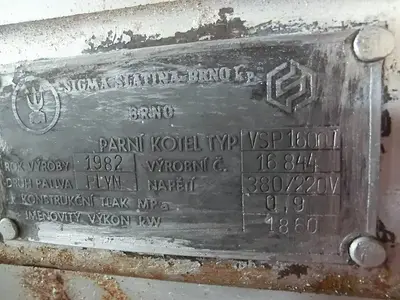 Used boiler made by sigma Slatina, model VSP 1600. Capable of making up to 1600 kg of steam per hour, heating medium is gas. Boiler is new 1982. The boiler is offered including control panel, burner PRVNÍ Brněnská Strojírna Třebíč, TYP APH-M 25 PZ, water treatment plant. The machine has all the documentation.