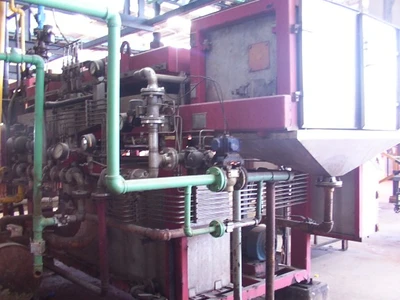 Used Verti-Press EF filter, 25 square feet (2.3 square meter) Filtra system model VP-25-1-(2). Stainless steel, automized PLC smart panel, semi-batch operation. Diaphragm squeezing 100 psi can produce cakes as dry as 95% solids. Includes pumps and screw for feed dryer.
