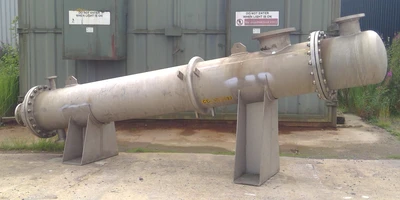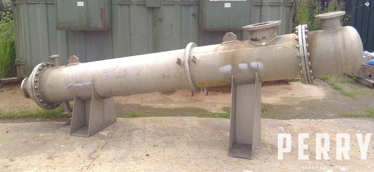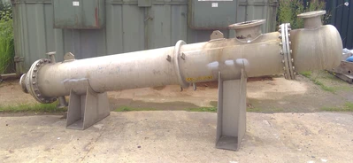 Used Vale Engineering approximately 20 square meter stainless steel shell and tube heat exchanger. Stainless steel tubes rated 3 bar design pressure at 4 to 140 deg.c. Stainless steel shell rated atmospheric design pressure at 4 to 140 deg.c. Bolted stainless steel heads.