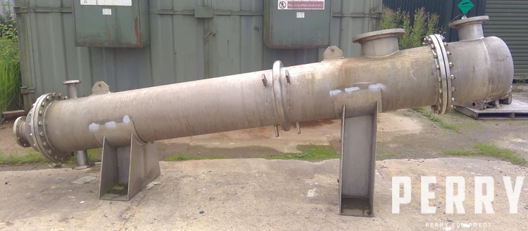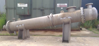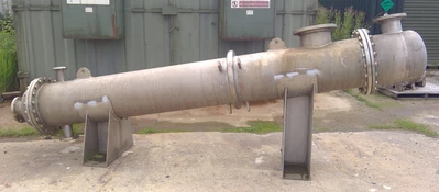 Used Vale Engineering approximately 20 square meter stainless steel shell and tube heat exchanger. Stainless steel tubes rated 3 bar design pressure at 4 to 140 deg.c. Stainless steel shell rated atmospheric design pressure at 4 to 140 deg.c. Bolted stainless steel heads.