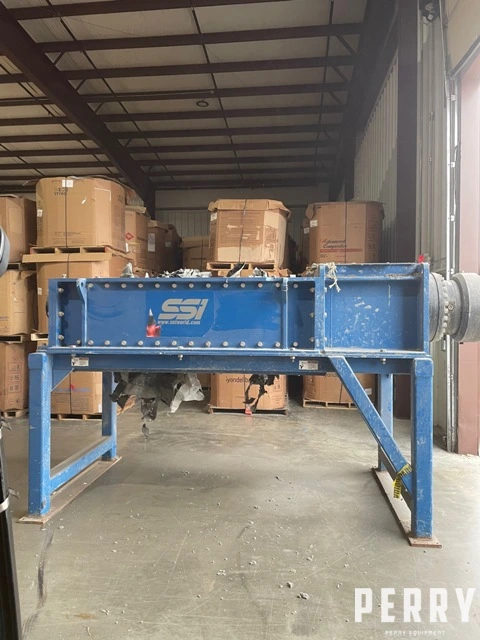 Used SSI hydraulic driven dual rotor shredder, Model M100H(75). Has 40″ x 75″ throat opening with 2″ wide blades installed, standard SSI material hopper. Driven by 200 HP hydraulic pumping system.