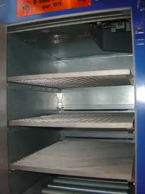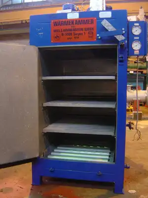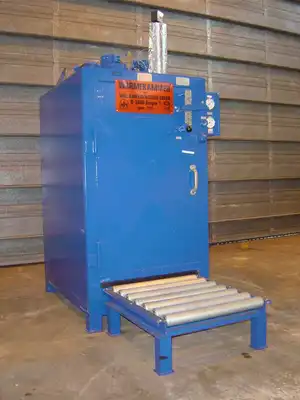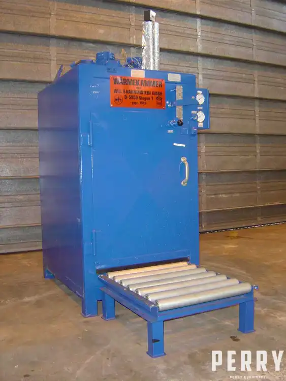 Perry is offering a high quality, used Will & Hahnenstein D-5900 KDK EEEIIT3 steam heated single drum oven suitable for 200 litre drum size or a number of smaller drums on shelves, with explosion proof motorised air circulation to EEX E II T3 for connection to 3 X 415V supply. Will & Hahnenstein is a leading manufacturer of drying equipment. With internal rollers, air circulation/ventilation system, 3 grid shelves, stainless steel drip tray and mild steel roller-pedestal for handling drums in and out. Internal dimensions are approx 700mm wide X 800mm deep X 1000mm high. Pressure rating 10 bar, motor capacity 250 watts,50 hz. Heating temperature range 0-250°C. This unit is ready to run. Perry has been supplying this type of equipment for decades. You can rely on getting a first class service from the Perry Equipment Group.