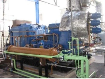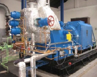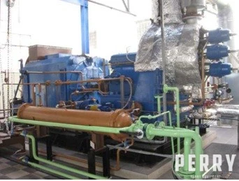 Used 2000 kW Atlas dual back pressure turbine C – 700 TE with the gearbox connected with coupling to a Skoda 1994 generator. The generator is coupled with the turbine on a steel frame. Single-stage steam turbine with an integrated gearbox. Self turbine stage is attached to the gearbox with one high-speed pinion on which is mounted the turbine impeller with two-stage axial blading type C. The cabinet is mounted on transmission. Bearing lubrication gear is protected from the oil system generator.