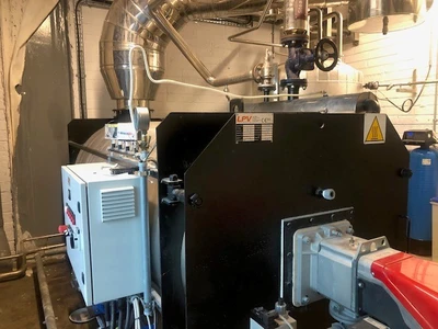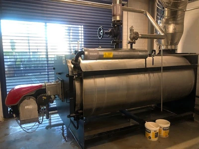 Used LPV Caldaie Model CF2000 steam generator. Maximum output rated 2000 kgs/hour. Operating pressure at 11.7 bar.