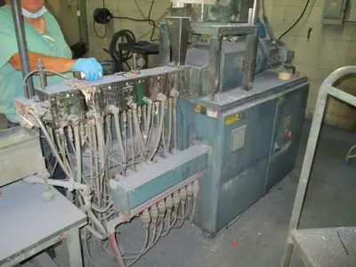 Used 20mm Werner & Pfleiderer model ZSK20 co-rotating twin screw extruder. Has 40/1 L/D barrel at 43″ centerline height driven through a 3:1 gearbox with a 37-Newton meter torque capacity per screw shaft. Extruder is powered by 5 hp AC motor with Allen Bradley 1336 impact drive unit, 588 rpm screw speed. Includes Brabender 1/2 hp model MS-FW40/Optus-70 feeder, spare used motor and gearbox. Extruder manufactured 3/2003.