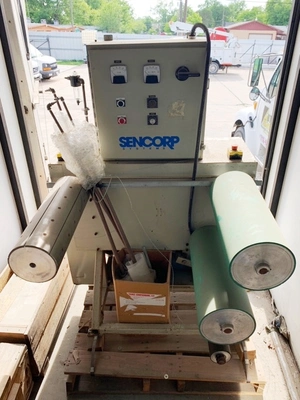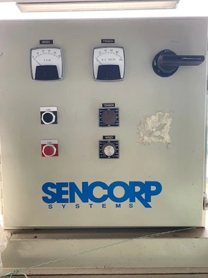 Used 24″ wide Sencorp Model LPW-20 winder, previously used for foam sheeting. Includes (2) rubber pull S-wrap pull rolls, and single winding shaft for 8″ cores. Includes operator control panel with DC volts and speed meters as well as tension controls.