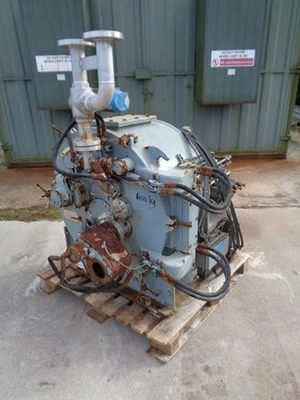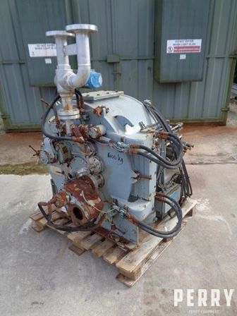 Used Krauss Maffei model HZ63 stainless steel peeler centrifuge. Has 630mm diameter X 315mm deep basket belt driven by 18.5 kW 380 volt 3/50 1470 rpm motor at maximum 2400 rpm with 2020 G-force and 0.62 square meter filtration area. Has 40.5 litre volume with product density 1250 kg/cubic meterand batch weight 50.5 kg. Includes plough discharge hydraulically driven by 1.5 kW 230/400 volt 3/50 1420 rpm powerpack. Mounted on baseplate.