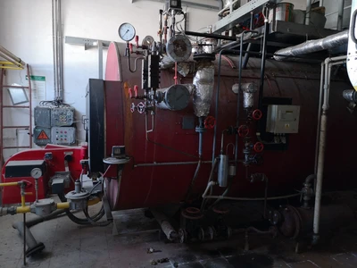 Used Roučka Slatina model VSK 2,5-1 steam boiler. Capacity 1250 – 2500 kg of steam per hour, max working pressure 1,1 MPa. Includes Weishaupt oil burner, control panel and documentation.