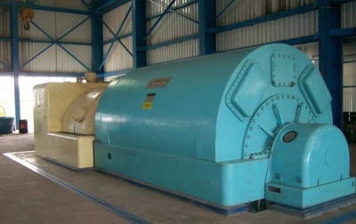 25 MW Westinghouse Steam turbine generator. Inlet pressure: 59.76 kg / cm2 (850 psi), inlet temperature: 482.2° Celsius. (900° Fahrenheit) rpm 3600, stages 13, model: YD1, 13.800/296V, 250 kVA dry generator, 1972. Generator manufacturer: Westinghouse model 500886 power 25 MW nominal tension 13.800 KV – 60Hz – rpm 3600