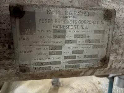 Used Approximately 270 Square Foot Horizontal Shell/Tube Heat Exchanger