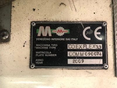 Used 2009 Macchi 3-layer blown film line still installed and currently in operation. Line previously utilized on LDPE/LLDPE/HDPE. Maximum 2350mm lay flat sheeting. Line consists of the following: