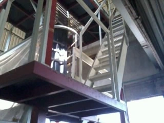 80mm extruder, 28/1 L/D driven by a 37 kW motor. Includes 200mm rotating spiral groove die (approximately 8″) with head thickness control system and automatic gap adjustment. Includes rotating take off, Corona treater, automatic 1100mm (approximately 44″) rewinder with surface and center assist capability.