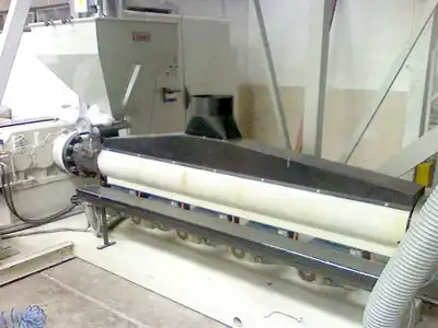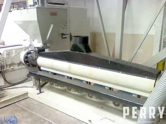 Used 2200mm Ibanez blown film line new in 1998 consisting of the following: Ibanez 90mm 24/1 L/D air cooled extruder driven by 150 HP motor. Includes (1) 400mm and (1) 250mm dies with air ring and rotating cart, adjustable bubble cage, 2200mm wide primary nips with collapsing frame, and 2 position surface winder. Line previously running LDPE. Has only 1 year of use. Presently installed as operated.