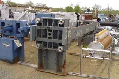 Used Hoesch polypropylene filter press. 30″ X 30″ (26) chambers plate and frames. Rated 15 bar with hydraulic closure. Model M30-171-D-157-PP.20. Serial #0675.