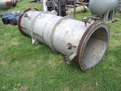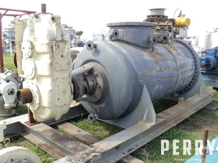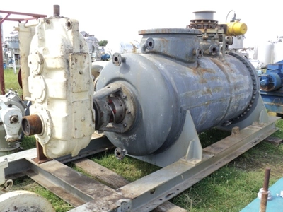 Used Draiswerke model HT3000 titanium turbulent mixer/dryer. Approximately 3000 litre working capacity and 3580 litre total capacity. Internal rated full vacuum/6 bar design pressure at 200°C. Heating jacket 240 litre capacity rated full vacuum/6 bar design pressure at 200°C. T-arm mixing blades driven by 37/55 kW 380 volt 3/50 984/1480 rpm motor and Flender model KZO 360 gearbox rated 90/65 kw with 1180/590 rpm input and 42/21 rpm output. Has mechanical seals on shaft with rotary valve discharge.