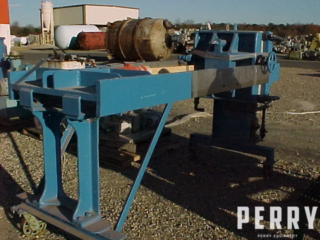 Used 31″ X 31″ polypropylene recessed filter press. 10 chambers, 4-eye closed delivery. Air/hydraulic closure with diaphragm pump. Battery operated team closure. Rated 100 psi. Expandable to 20 chambers, approximately 100 square foot filter area. 5.7 cubic foot cake capacity. Mounted on caster wheels.