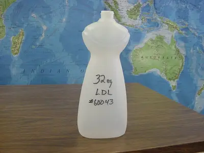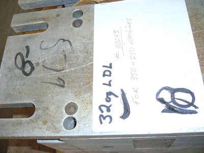 Used Uniloy 6-cavity mold number 60043 for 32 ounce LDL bottle. Includes trim tooling. Previously used with Uniloy model 350R and 250R Other. Part wt. without flash 49 grams.