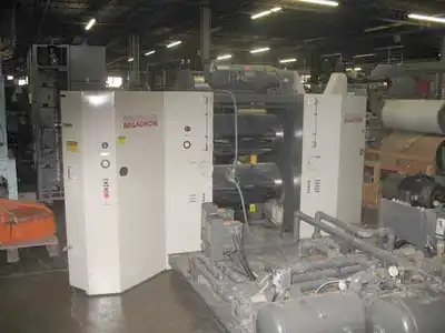 Used Cincinatti Milacron 2-roll cooling roll stack including unwind. Also included in package is the following: