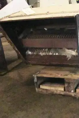 Used Cumberland pull roll hopper with 6″ diameter x 37″ wide Knurald and grooved all set position feed roll infeed with pneumatic pinch. Feed roll in feed trumpet, feed rolls are chain and sprocket driven by 7.5 hp 1750/1930 rpm continuous duty DC motor through Reliance 2.76/1 gearbox. See Model 37 Cumberland granulator at additional cost.