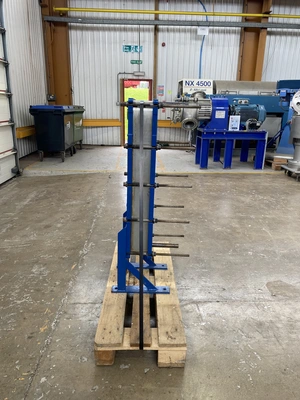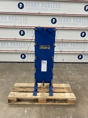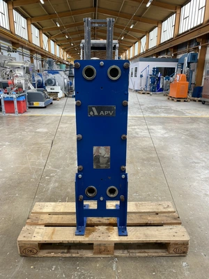 Used APV model H17 approximately 4.9sqmt stainless steel plate heat exchanger. Unit rated 8 bar working pressure both sides at -6 to 95 deg.c. Capacity approximately 8.4 litre on both sides.