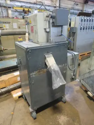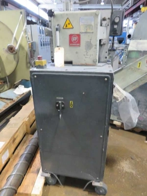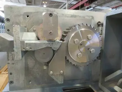 Used 4″ wide Scheer Bay Pelletizer. Model SGS100-E, serial # SE10CC-9801. Has 32 knife helical style rotor with carbide inlay driven by an AC Tech variable speed controller. 460 volt AC input, 3 phase, 60 hertz, 14.2 amps. Mounted on caster base.