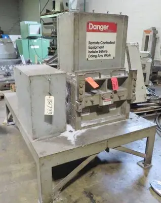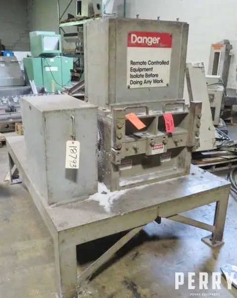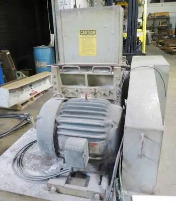 Used 15″ x 24″ Cumberland Granulator. Model 1524B, serial #58500-802. Has 3 knife steep angle rotor with 2 bed knives. Top feed box hopper and airveyor discharge. Driven by a 40 HP 230/460-volt 1775 RPM motor. Starter & controls not included. Mounted to a plate base. Last ran PE film.