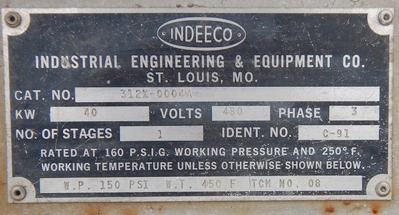 Used 40 kW Industrial Engineering & Equipment Co temperature control unit. 480 volt, 40kW, Rated M.A.WP 150 psi @ 450°F