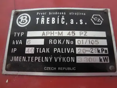 Used boiler made by Sigma Slatina, model VSP 2500. Capable of making up to 4000 kg of steam per hour, heating medium is gas. Boiler is new 1983. The boiler is offered including burner PRVNÍ Brněnská Strojírna Třebíč, TYP APH-M 45 PZ. The machine has all the documentation.