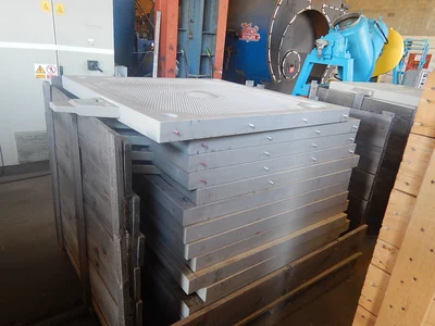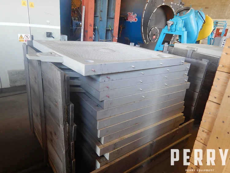 14 Unused Micronics JVK 15033 membrane 1200mm x 1200mm polypropylene/rubber membrane, 3 5/8″ thick, 4-eye delivery plates. $650.00 each
