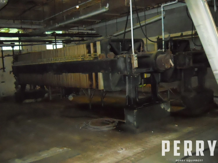Used filter press. (62) 1200mm polypropylene recessed Lenser plates. 4-eye. Shriver skeleton. Hydraulic closure.