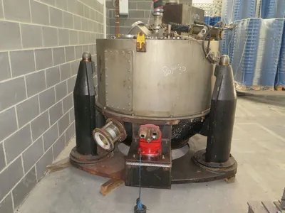Used Broadbent Type 46A stainless steel solid basket centrifuge. Has 1250mm (48″) diameter X 510mm (24″) deep basket. Has 2.3M2 filtration area with 283 litre nett capacity. Includes power pack, local operator panel and control panel. Previously used on chemicals.