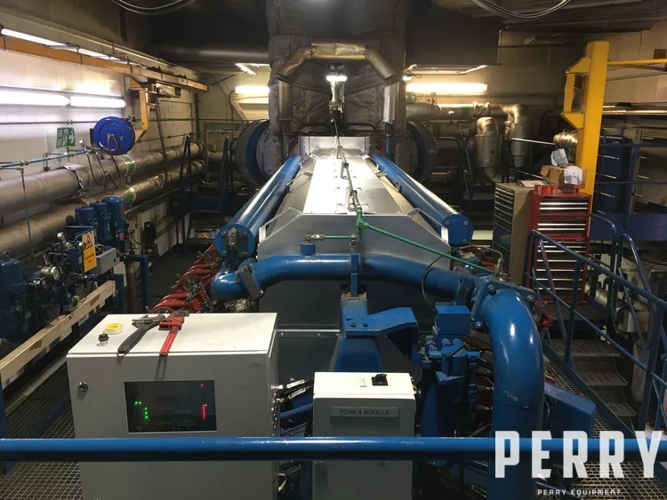 – ABB HSG 900 LS8 generator. This is a self-cooled, 3-phase, brushless, synchronous, two bearing type generator with the following specifications: 7235 kVA, 0.8 power factor, 11000 V, 380 A, 50 Hz, 750 RPM, 900 RPM, insulation class F, IP21 protection and IEC34 standard.