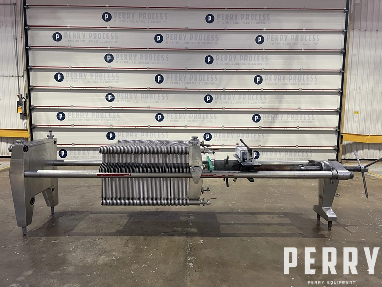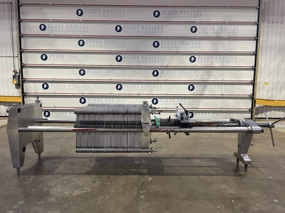 Used Seitz Enzinger Noll reportedly model 60/150 type C stainless steel filter press. Unit has (67) 600mm x 600mm stainless steel plates and (1) stainless steel end plate which will accomodate (66) filter sheets giving approximately 22m2 filtration area. Unit is type C with central tightening device via spindle and capstan handle.