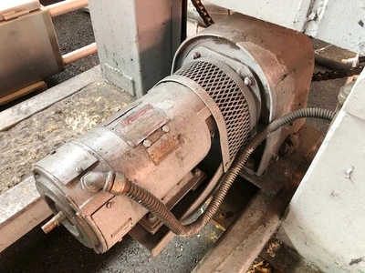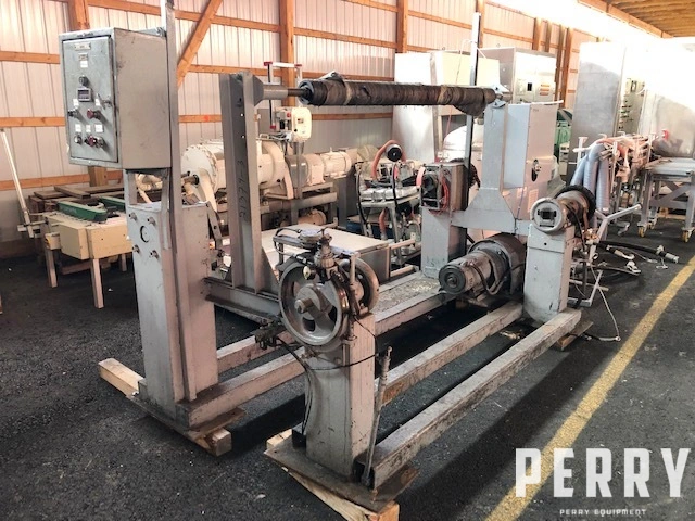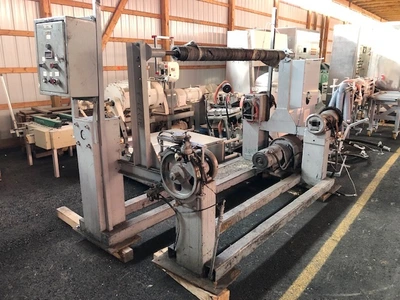 Used 65″ custom built sheet winder for approximately 32″ OD rolls. Winder has two fixed winding positions, chain driven by a common motor.