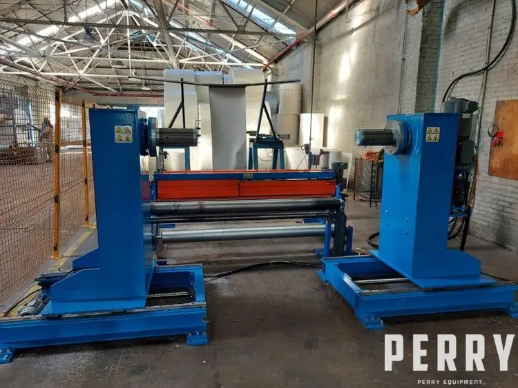 Used 70″ wide Cattorini shaftless film winder for maximum 200 meters per minute line speed. Includes input pull roll stand, single position winder with operator control panel, maixmum 94″ diameter roll capability, and utilizes 6″ or 12″ diameter cores. Has 20 kw motor 480 volt AC input. Pull roll stand has 1.5 kw motor new approximately 5/2021.