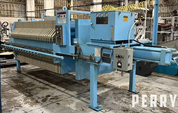 Additional information: 100 psi max. filtering pressure, 115 tons max. thrust, 4,600 psi max. oil pressure, 40.5 cubic feet holding capacity, 1.5″ cake thickness, 80 lbs/cubic foot cake density, cloth media.
