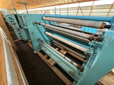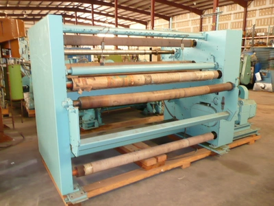 Used 72″ Dusenbery model 815 Duplex score cut slitter-rewinder having a 25 HP DC & 15 HP DC dual drive system with score slitting assembly Duplex differential center wind presently set up for one zone control per winding shaft for maximum 28″ diameter rolls on 3″ cores. Separate Dusenbery model 863 AK single station unwind for 40″ diameter Mill rolls on 3″ cores with Fife edge guide system. Serial #54378