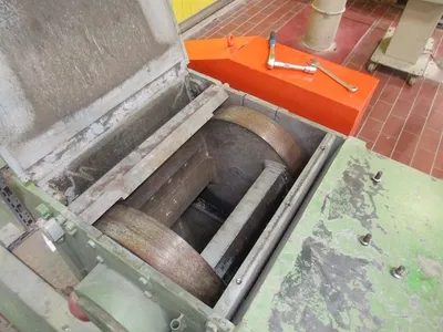 Used cutter/chipper for profiles by Pallmann (Germany) type PHK 100×140. Machine has feeding inlet with width 400 mm x height 100 mm. Can work on profiles made in aluminium or pvc with maximal dimensions up to 360 mm width x 85 mm height. Profile is feeded into milling chamber on roll conveyer via two leading rolls. Main motor is 55 kW. Bottom discharge through screen – but screens are not included. No control panel.