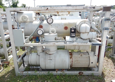 Used 80 kW Industrial Engineering Equipment Syltherm temperature control unit. 480 volt, 80 kW, 450°F. Heat exchanger 150 psi @ 450°F; 150 psi @ -100°F.